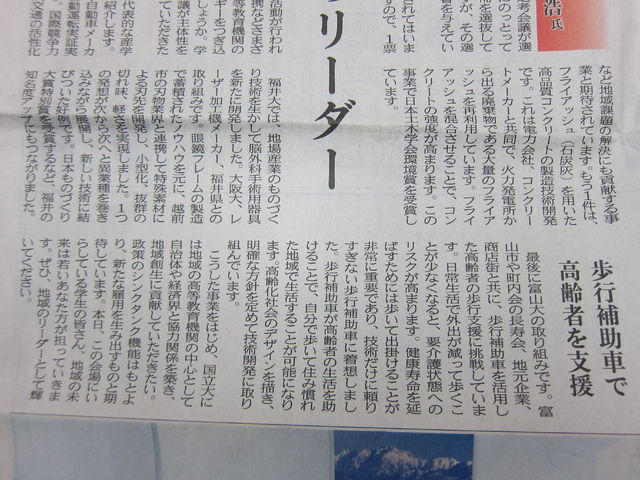 馳文部科学大臣の基調講演の内容を記す中に、太文字で「歩行補助車で高齢者を支援」の文字。思わず見入ってしまいました。文部大臣がホコケンを取り上げて下さったのです。うれしいを超えて名誉なことに感じました。