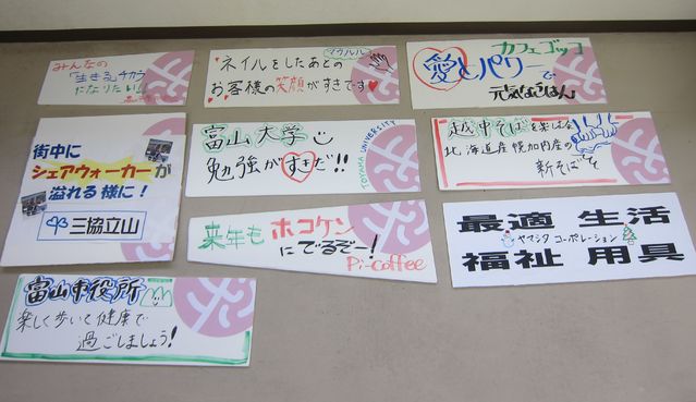 今年のシークレットステージのお題「心のプラカード」にちなんで、心の内を書いていただきました。みんな富山で活躍中です。御贔屓にしてください。