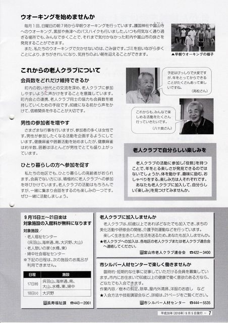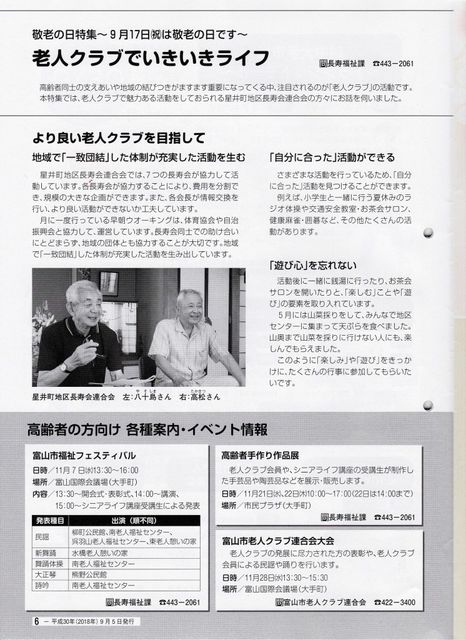 【中林】富山市報(2018年9月5日号)~星井町地区長寿会~